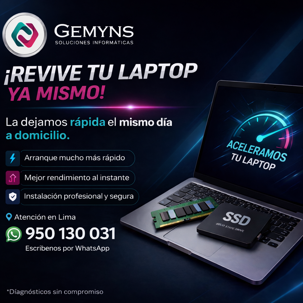 Servicio técnico en Lima especializado en laptops y PCs. Mejora tu equipo con SSD, RAM y optimización profesional.